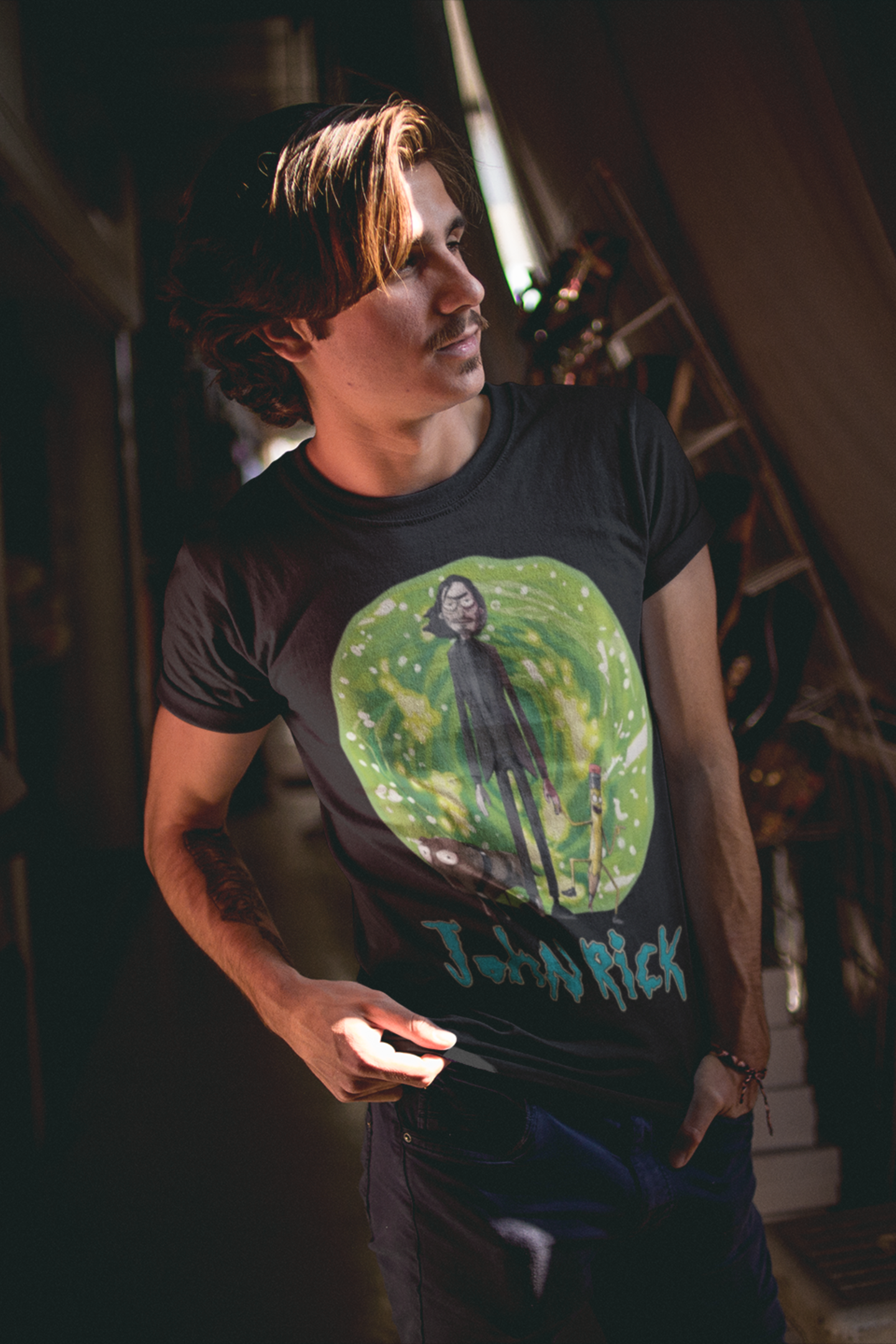 Step into the chaotic world where Rick and Morty meet John Wick. The John Rick tee from Otaku Mayhem combines intense action with dark humor in a unique design. Made from soft, breathable cotton, this unisex tee is available in sizes S to XL and proudly crafted in the USA.